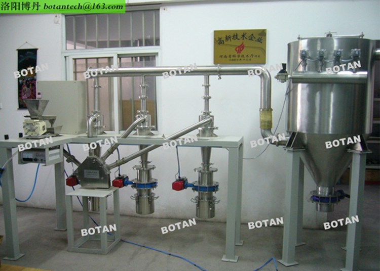 4.檢查剎克龍下面關(guān)風(fēng)器是否有漏風(fēng)現(xiàn)象,可以用手或細(xì)粉料放在接口處有無往里吸的感覺,如有必須進(jìn)行密封處理。待上述檢查后,超細(xì)分級(jí)機(jī)一切正常,便可準(zhǔn)備帶料生產(chǎn)。